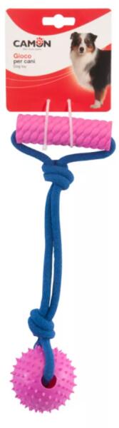 TPR és poliészter kutyajáték kötéllel és labdával. Mérete: kb. 30 cm