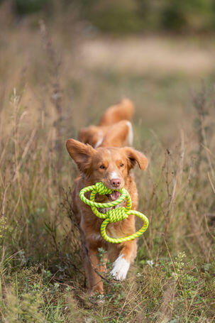 Jellemzők : - Kutyajáték, amely egy labdából és kötélből áll. - A kötél használatával könnyedén eldobhatja a labdát, ezért ideális a visszahozó játékokhoz. - A kötélnek köszönhetően a labdát a kutya is könnyen fel tudja venni.