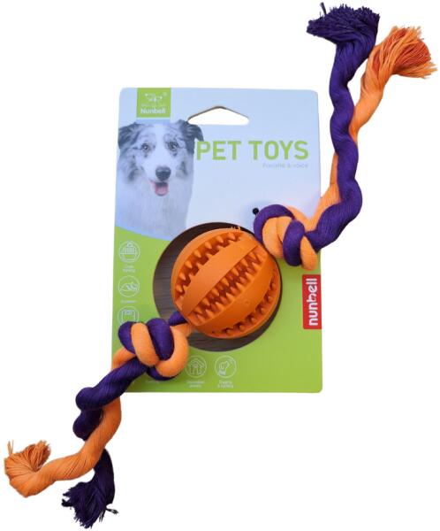 Ez a Denta Fun gumilabda tökéletes választás a kis- és közepes méretű kutyák számára, akik szeretik a játékot és egyben szükségük van a fogápolásra is. Az 5 cm átmérőjű narancssárga gumilabda nemcsak strapabíró és rágásálló, de menta ízesítésével friss leheletet is biztosít kedvencének. A labdához csatolt kötél extra játékélményt nyújt, miközben segít