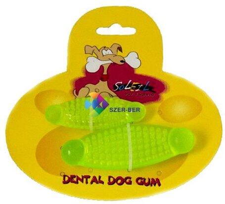 Soleil kutyajáték. Erős gumiból készült, kis kúpokkal tűzdelt rágójáték kutyusok számára. A gumikúpok rágás közben tisztítják a fogakat, és a szájüreget. Figyelemfelkeltő, élénk zöld színű. Tartós rágni való a kutya számára.