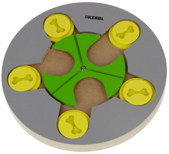 erős MDF fából, festett felülettel a kutya a fedő lenyomásával érheti el a jutalmat csúszásmentes közepes nehézségi szint Átmérő: 25 cm magasság: 2,5 cm