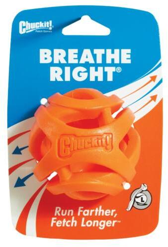 A Chuckit Breathe Right Fetch Ball egy olyan erős szerkezetű labda, melynek célja, hogy megkönnyítse a légzést és a légáramlást a kutya tüdejében játék közben. Ennek a labdának köszönhetően a kutya 30-50% -kal hosszabb ideig játszhat mivel a légzését nem gátolja a szájában hordozott labda. Üreges formájának köszönhetően a belsejét jutalom falatokkal is megtölthet