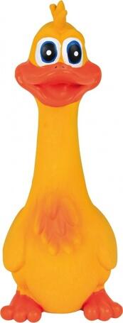 Latex gumiból készült, látványos, hosszított nyakú kiskacsa kutyáknak. Nyomásra, rágásra autentikus kacsa hangot ad ki. Remek kutyajáték. Mérete 20 cm.
