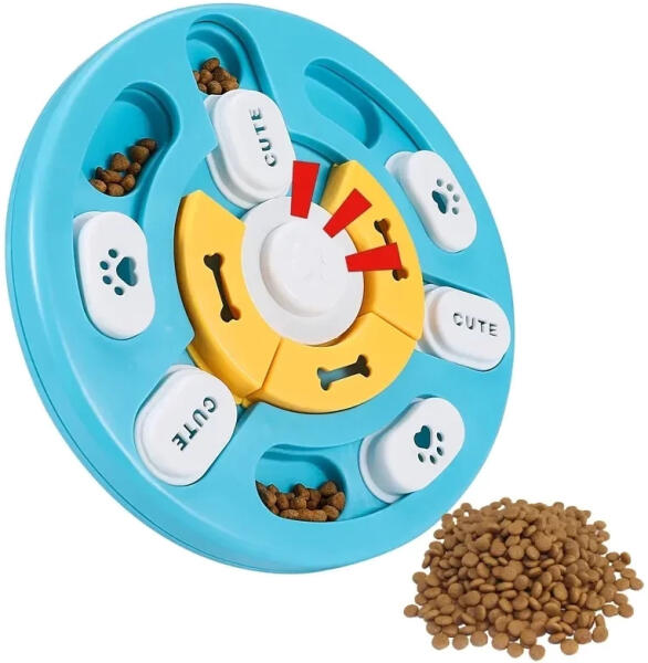 Oktató játék interaktív játék a kutya tál lassításhozEz a játék fejleszti kedvencünk mozgékonyságát, okosságát és intelligenciáját. A tábla mélyedéseiben elrejthetjük a jutalomfalatokat, a kutya feladata pedig az, hogy a csúszkák manipulálásával megtalálja azokat. A jutalom a megszerzett jutalomfalat, de maga a keresési folyamat okozta elégedettség is. Segíthet, h