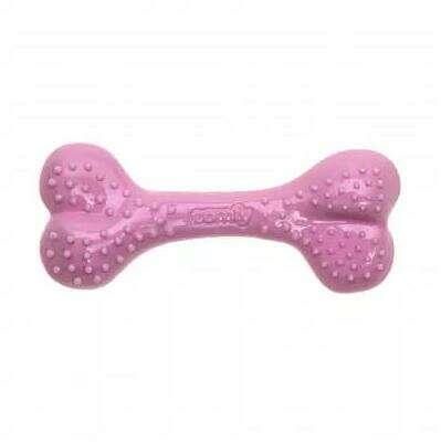 Comfy Strawberry Dental Bone - fogtisztítós játék (csont) kutyák részére (8,5x4x2cm)A Dental Bone Pastel Strawberry egy illatosított játék kutyáknak TPE műanyagból készült csontok formájában. Biztonságos az állatok számára, rugalmas és kellemes a fogaknak. Masszírozófejekkel van felszerelve, amelyek segítenek fenntartani az íny jó állapotát. Kellemes eper illata van. O