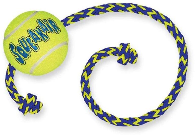 A Kong SqueakAir® teniszlabda kötéllel két klasszikus kutyajáték kombinációja - a teniszlabda és a csipogós játék - nagyszerű elkapós játékélmény érhető el. A tartós, kiváló minőségű Squeak air Teniszlabda nem fogja megviselni a kutya fogait, mert egy speciális, nem koptató filcből készült.
