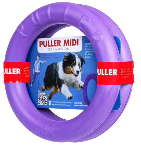 A Puller egy egyedülálló kutyajáték, amely a játék mellett alkalmas kiképzésre is. Kiszerelés: 2 db puller karika/csomag. Szín: lila Méret: 20 cmátmérő ; 3 cmvastagság. A MIDI méret kis - és közepes testű kutyáknak (kb. 40-50 cm-s marmagasság között) megfelelő. Úszik a vízen Különleges (kemény habszerű) anyagának köszönhetően nagyon könnyű Füvön, homokban is