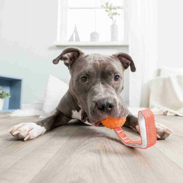 Gumis játék labda formában zsinóron, amely kiképzésre is alkalmas. Labda átmérője: 7 cm Játék hossza: 38 cm
