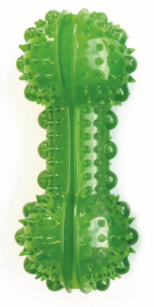 Élénk színű hőre lágyuló gumiból készült csont kutyák részére. Nem csupán játék, hanem finomságadagoló is, amely felkelti kutyád érdeklődését és serkenti intelligenciáját. Az áttetsző csont lehetővé teszi, hogy elrejtsd benne kutyád kedvenc falatkáit, így a játék jutalmazó kalanddá válik. Egyedi lehetőséget biztosít kedvencednek, hogy fejlessze problémameg
