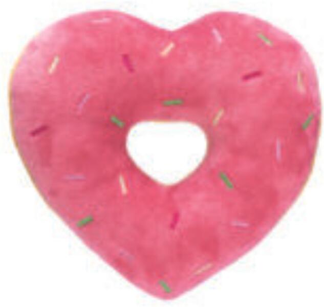 Valentin napi szív alakú fánk. Csipogó nélküli plüss kutyajáték. Mérete: 15cm Anyaga: Plüss