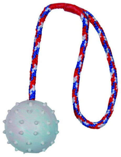 Tömör Gumi Labda Kötéllel Ø 6cm/30cm Ez a pattogó gumilabda hosszú, fogantyús zsinórral rendelkezik, így könnyedén irányítható. Tökéletes a kötélhúzó, üldöző és apportírozós játékokra - egy klasszikus kutyajáték! A színe eltérhet a képen láthatótól. Figyelem: mint minden termék használata, ezen terméké is fokozott odafigyelést igényel. Kérjük, rendszere