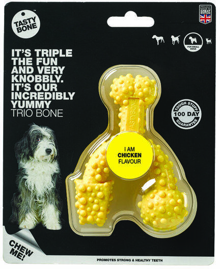 Háromszoros szórakozás. Hihetetlenül finom trio kocka. Akárcsak minden TastyBone nylon finomság, ezt is tesztelték a legenergikusabb ínyenceken. A kocka kis kutyák számára megfelelő és változatos rágási örömöt biztosít. 100% nylonból készült, hogy kielégítse még a legnagyobb rágókat is. A kocka kielégíti a természetes rágási és játék igényt. A kockák egyedül