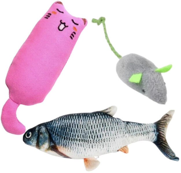 Macskajáték plüss hal hal macskamenta 21cmA játék egy 3D-ben készült, puha plüss hal alakú plüss, nagyon valósághű megjelenésű és méretei is hasonlítanak egy igazi halhoz. Egy ilyen játék szórakoztatja a macskát a gazdi távollétében, és fizikai aktivitásra ösztönzi. Az anyag, amelyből a játék készült, könnyen tisztítható, mivel mosógépben vagy kézzel 30 foko