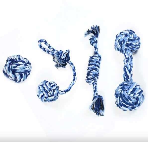 A Reedog small játszókötél nagyszerű szórakozás mind a gazdinak, mind a kutyának. Ideális játék, mely formában tartja házi kedvence rágóizmait! Kiváló apportáló játék. A készlet kék-fehér kombinációban készült. A készlet tartalma: 1x csomó (27 cm), 1x játszókötél labdával (31 cm), 1x súlyzó (17 cm), 1x labda ( 5 cm),