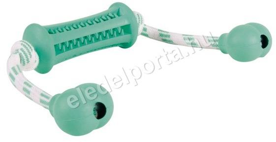 Menta aromával. Masszírozza a fogínyt. Játék házi kedvencek részére. Anyaga: az állat szempontjából biztonságos anyagból készült (gumi, latex, műanyag, plüss, fa vagy fém). Ne hagyja kedvencét felügyelet nélkül a játékkal!