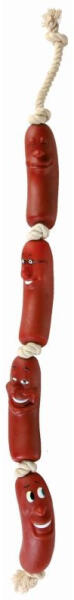 Trixie Játék Gumi 4 Kolbász Kötélen 75cm Játék házi kedvencek részére. Anyaga: az állat szempontjából biztonságos anyagból készült (gumi, latex, műanyag, plüs fa vagy fém)Ne hagyja kedvencét felügyelet nélkül a játékkal.