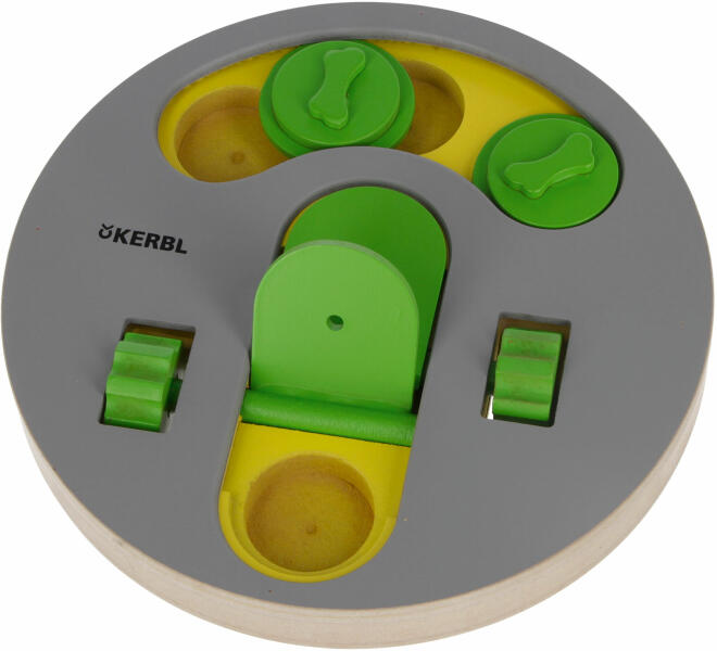 erős MDF fából, festett felület csúszó fedelekkel és két kerékkel csúszásmentes szaglólyukakkal, így könnyítve a kutyáknak megtalálni a jutalmat könnyű néhézségi fokTulajdonságok Átmérő 23 cmMagasság 4 cm