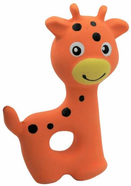 Zsiráf játék hanggal kutyáknak A kutyák hangjával ellátott zsiráf játék kimeríthetetlen szórakozási forrást nyújt négylábú barátjának. Kompakt, 10x8x3 cm-es méreteivel kis és nagy fajták számára egyaránt alkalmas, garantálva a játékórákat. Anyag A játék nem mérgező és tartós anyagokból készül, ideális rágáshoz és rágáshoz. A külső felület kellemes t