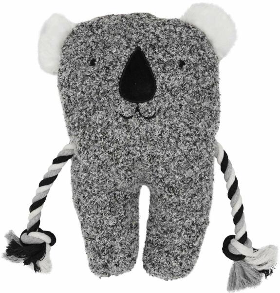 Flamingo plüss koala, kötél karokkal. Rendkívül nagyszerű játék kutyák számára. Erős anyagból készült, ugyanakkor puha plüss állat, így kiválóan alkalmas lehet bármilyen fajtájú és méretű kutyák számára. Minőségi kialakítása és varrása ellenállóvá és mindennapos játékra alkalmassá teszi. A kötél rész különleges rágófelületet nyújt a házi kedvence