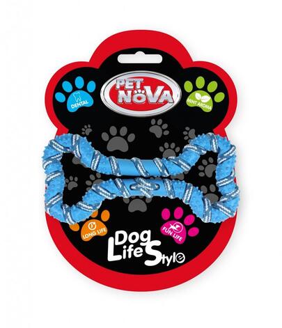 Csont alakú játék kutyáknak apró tüskékkel a felületén, amely masszírozza a fogínyt és támogatja a fogápolást. TPR (thermoplastic rubber) - termoplasztikus gumi, egy rendkívül rugalmas és lágy anyag, amely rágás közben masszírozza kutyusa ínyét Mé ret: 20cm