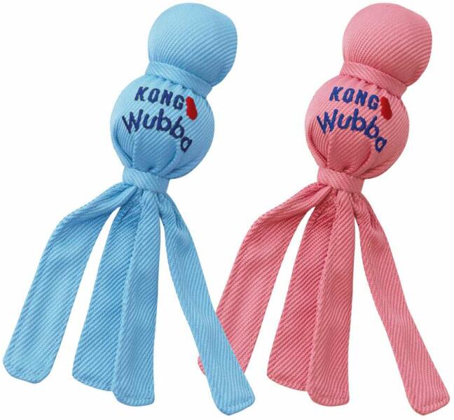 KONG - JÁTÉK KONG WUBBA KÖLYÖK KUTYÁNAK A KONG Wubba Puppy egy egyedülálló textillel bevont kölyök kutyajáték melyben két labda található közülük az egyik csipogó! A játékot polipszerű karokkal láttak el mellyel a játék messzire hajítható így kitűnő apportírozáshoz továbbá húzogatós játékra is! A KONG játék egyedülálló természetes gumi összetevői után