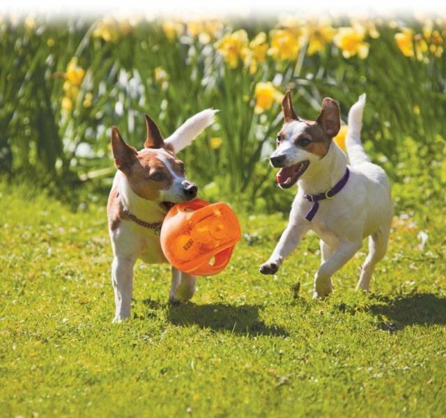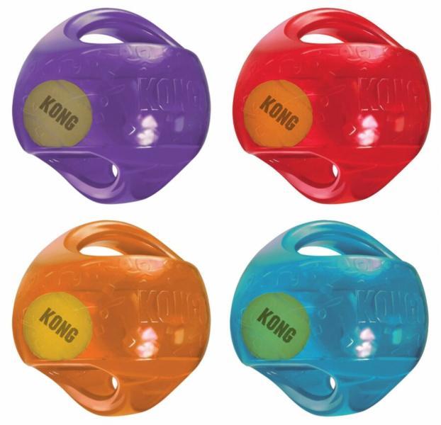 A Kong Jumbler egy 2 az 1-ben labda a megkettőzött interaktív szórakozáshoz, alkalmas nagytestű kutyafajták számára. a belső teniszlabda és a hangos síp játékra csábít, a fogantyúk pedig megkönnyítik a felvételt és a rázást A Jumbler ellenáll a durva játéknak, ami ideálissá teszi a visszahozási játékhoz Mérete : L/XL, 18,5 cm A kép illusztráció, a színek eltérh
