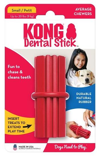 A KONG Dental Stick megnyerő kialakításának köszönhetően nagyszerű megoldás rágcsáláshoz és visszahozós játékokhoz. A szabadalmaztatott Denta-Ridges barázdák csökkentik a fogkőképződést, miközben finoman dörzsölve megtisztítják és kondicionálják a fogakat és a fogínyt. Visszahozható botként is használható, amely biztonságos és megbízható is egyben Tisztítj