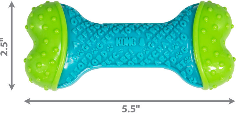 Extrém erős, többrétegű magjával valóban hosszan tartó rágásélményről gondoskodik. Kitűnő játék dobálásra vagy apportírozásra. Felületének hála, jól megfogható - úgy Ön, mint kutyája számára. Méret: S/M (14 cm). 1 db csont. Strapabíró rágójáték közepes méretű kutyáknak Speciális KONG-fejlesztés, többréteg ű maggal : S nagyon erős, robusztus mag, hoss