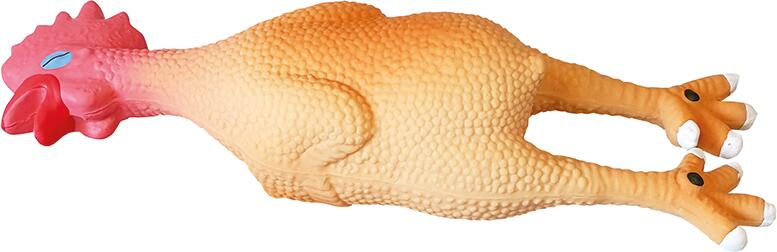 A Perfecto Fun Latex Chicken vicces figurájával közvetíti a közös játék örömét, ha csak ránézünk. Színes dizájnjuk megmozgatja a fantáziát, és a figura megnyomásakor csikorgó hanggal lepi meg. Ez különösen népszerű a kíváncsi, aktív kutyák körében. Ez a latex játék csirke formájú. Kb. 16 cm magas.