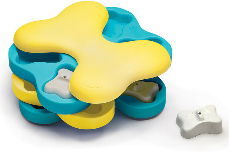 Pörgés és móka négy emeleten! Hogyan kell játszani? Tegyél jutalomfalatot a rekeszekbe, majd fedd le azokat a rekeszekbe passzoló csontokkal. Minél több rekesz van lefedve, annál nehezebb lesz a játék. Mutasd meg kutyusodnak, hogy mit rejtenek a csontok, hogy felkeltsd az érdeklődését és indulhat a kihívás! Miközben próbálja majd kivenni a falatokat, a játék négy emelete