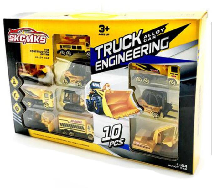 Építőipari munkagépek 1:64-es méretarányban 10db-os szett Hivatalos magyarországi forgalmazótól. Leírás: Ebben az összesen 10db különböző munkagépet tartalmazó szettben olyan különleges nehézgépekkel találkozhat gyermeked, mint például a markoló, daru, villás targonca, betonmixer, buldózer és további precízen kidolgozott sárga színű munkagép. A részletgazdag kid