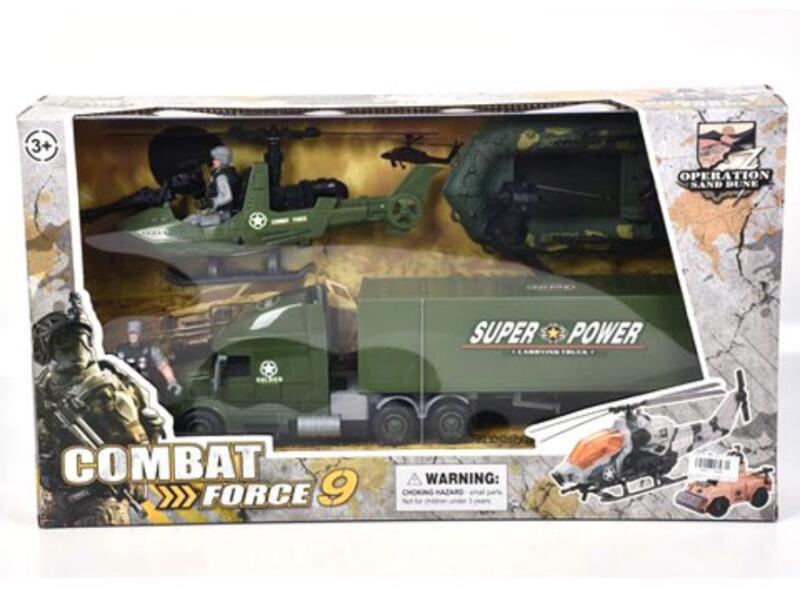 Combat Force 9 katonai játékszett helikopterrel és kiegészítőkkel Hivatalos magyarországi forgalmazótól. Leírás: Egy nagyon vagány szettet szerezhetsz be gyermekednek, mely biztosan tetszeni fog majd neki. A szettben katonai járművek találhatóak, melyek között egy katonai kamion, egy helikopter és egy hajó is megtalálható. Ezekkel rengeteget játszhat majd gyermeked, valamint