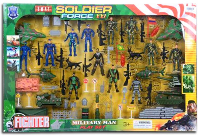Military Man Katonai játékszett Hivatalos magyarországi forgalmazótól. Leírás: Harci járművekkel, katonákkal, valamint fegyverekkel és kiegészítő játékelemekkel lehet még izgalmasabb a csatajelenet, melyben a gyerekek játszhatják el amint a két fél összecsap. A katona játékfigurákkal eljátszhatják a csatát a homokozóban vagy a szobájukban is, ahol a járműveket bevet