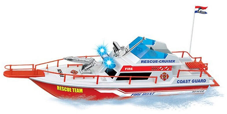 Utazz a piros tűzoltó motorcsónakkal! A Tűzoltósági elemes motorcsónak nagy méretű műanyag hajó, amivel a tengeren égő hajókat lehet eloltani. A hajó elemes meghajtású, ha bekapcsolod felpörög a propellere és elindul, a haladási irány a kormánylapát elfordításával szabályozható. A hajót medencében, de még a fürdőkádban is használhatod! A Tűzoltósági elemes mo
