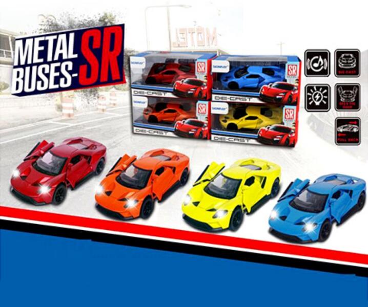 Jellemzők: - Luxus sportautó modell - Fénnyel és hanggal - Hátrahúzós funkcióval - 4 színváltozatban (piros, narancssárga, kék, citromsárga) - Anyaga: fém/műanyag - Méretaránya: 1/43 A feltüntetett ár 1db terméket jelent, melyet bármely változatban szállíthatunk. Javasolt életkor: 3 - 8 éves korig Kiknek ajánlott: Fiúknak Jellemzők: - Luxus sportautó modell - Fénnyel