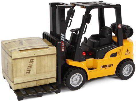 A részletgazdag kidolgozással rendelkező villástargoncával a gyerekek is beleláthatnak az árumozgatás folyamatába. A targoncán egy raklap, azon pedig rakomány is található. A fémből készült targoncával való játékot a fény- és hanghatás még izgalmasabbá teszi. A targonca mérete: 14 cm.