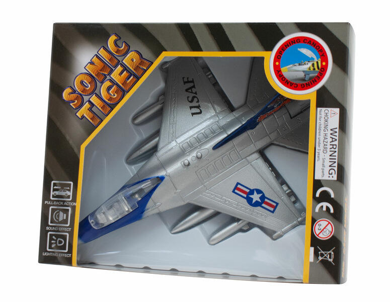 SonicTiger vadászrepülőgép F16-os 20cm A megjegyzésben kérjük tüntesd fel, hogy melyik változatot szeretnéd! Fedezd fel a légierő erejét a SonicTiger F-16-os vadászrepülőgép modelljével! Ez a részletgazdag, 20 cm hosszú repülőgép játék tökéletes választás minden fiatal pilóta és repülés rajongó számára. Az F-16-os egy ikonikus, többszörös használatra terveze