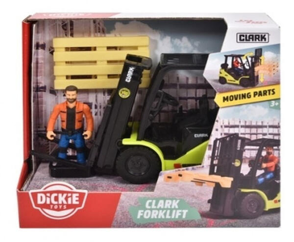 Minden kisfiú nagy csodálója a munkagépek sokszínű világának. A Dickie Toys most elhozza otthonába kedvenc járművét, egy Clark targoncát, mellyel izgalmas játékokat játszhat majd el. A targonca egy rendkívül izgalmas találmány, és legalább ennyire praktikus is. Pontosan mint a való életben, a játékszettben található 1:24 arányban kicsinyített Clark S25 gép ugyanúgy