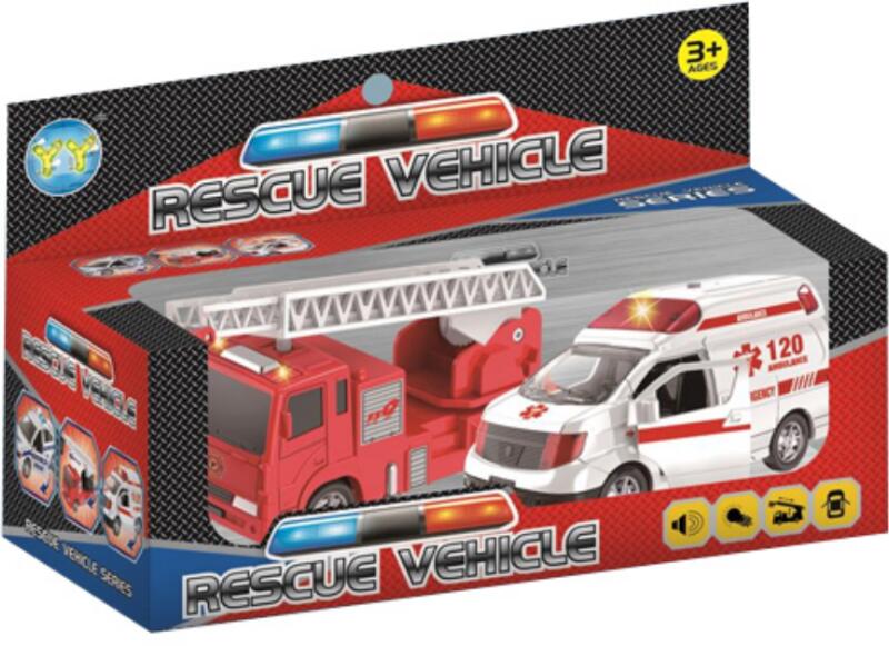 Rescue Vehicle 2db-os tűzoltó és mentőautó szett fénnyel és hanggal Hivatalos magyarországi forgalmazótól. Leírás: Egy különleges szettet szerezhetsz be gyermekednek, amivel rengeteget játszhat majd. A szettben egy mentőautó és egy darus tűzoltóautó található, melyek mindegyike rendkívül részletes kialakítást kapott, így téve különlegessé annak megjelenését kív