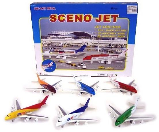 Szállíts utasokat, vagy rakományokat a sugárhajtású repülővel! A Sceno Jet szállító repülőgép egy légi szállításra készült jármű, amivel csomagokat, járműveket, vagy személyeket is lehet szállítani. A repülő fémből és műanyagból készült, ha felhajtod az oldalát, meglátod, mit szállít a gép. A repülő felhúzós meghajtással van felszerelve, ha hátrahúzo