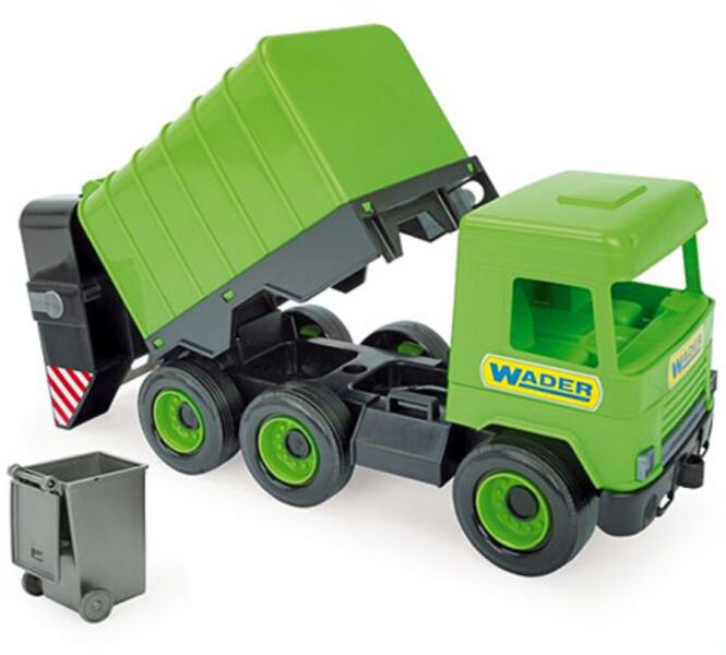 Middle Truck: Kukás autó 43cm zöld - Wader Hivatalos magyarországi forgalmazótól. Leírás: A kicsik kedvelt munkagépe a kukásautó, mellyel nap mint nap találkozhatnak az utcán amint abba éppen a szemeteseket ürítik. A játék során most ők is begyűjthetik a hulladékot, hiszen az emelőszerkezettel is felszerelt játék kukáskocsi éppen úgy működik mint az igazi. Parkolj be