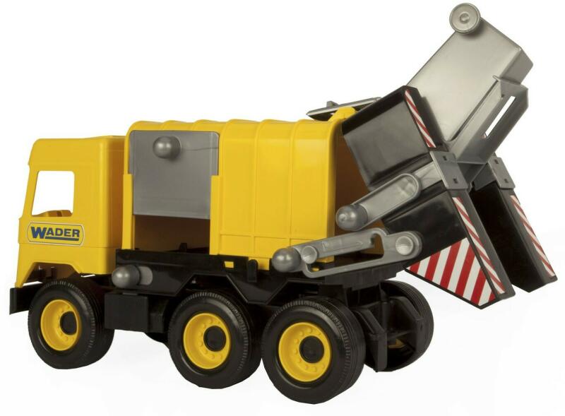 Middle Truck: Kukás autó 43cm sárga - Wader Hivatalos magyarországi forgalmazótól. Leírás: Ismerkedj meg a kukás autókkal és a működésükkel ennek a negyvenhárom centiméteres kukásautónak a segítségével, ami minden tekintetben olyan mint az igazi társaik, hiszen a hátuljukon kialakított emelő szerkezettel képes a készlet részét képező kukát felemelni és kiüríteni