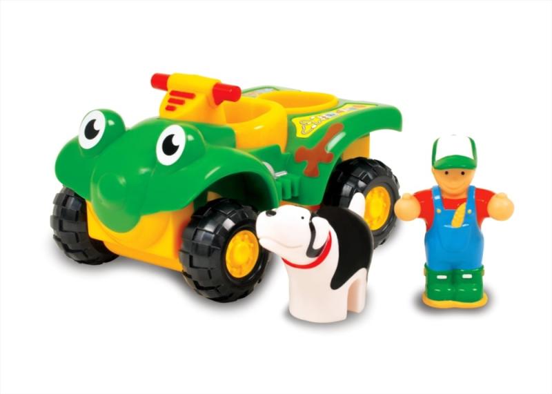 Wow Toys- Benny, a farmer quad Quad, „döcögő mozgással Itt van Benny barátotok, aki kint dolgozik a WOW földeken! Jó barátaim, Clark a földműves, és Shep a juhászkutya segítenek a munka elvégzésében a WOW gazdaságban. Megetetjük az állatokat, kazalba rakjuk a szénát, megöntözzük a földeket, és még rengeteg más munkát is elvégzünk. Néha versenyzünk egy kicsit a s
