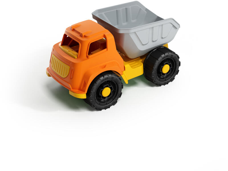 Műanyag teherautó mozgatható raktérrel. A játék 100%-ban újrahasznosítható, nem mérgező, nap- és vízálló műanyagból készült. Mérete: 26*14 cm.