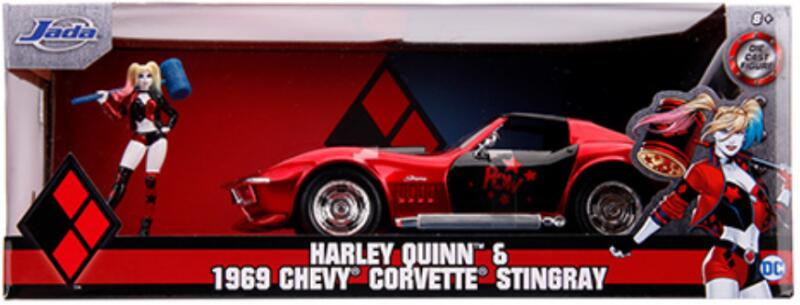 DC Comics: Harley Quinn figura és 1969 Chevy Corvette Stingray fém autómodell 1/24 - Simba Toys Hivatalos magyarországi forgalmazótól. Leírás: A DC Comics képregények immár a mozivásznakon is szórakoztatják a rajongókat, a 2016-ban megjelent Suicide Squad avagy Öngyilkos osztag pedig megismerhette velünk Harley Quinn-t. A népszerű szuperhős figura mellett az autórajongók szí