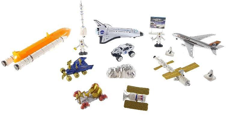 Indulhat az űrkaland. Az űrhajós játék szettben 16 db. különbőző jármű és eszköz található. Ajálott, 3 éves kor felett.