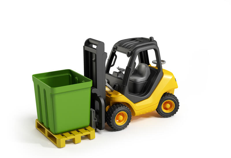 Műanyag mini targonca sárga-fekete színben. A targonca rész és a kormány manuálisan mozgatható. A targoncához egy konténer is tartozik. A termék 100%-ban újrahasznosítható. Nap - és vízáll műanyagból készült. Csomagolás mérete: 16*11 cm.