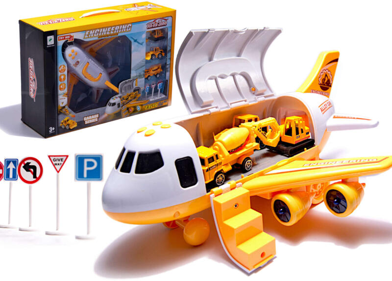 Teherszállító repülőgép munkagépekkel Építsünk együtt egy új házat... vagy egy egész lakótelepet! A szükséges építőipari gépeket légi úton szállítjuk. Egy nagy repülőgép, amely képes a fedélzetén szállítani az autókat és a táblákat. Egy komoly építkezés nem nélkülözheti a munkagépeket. Kotrógép és betonkeverő nélkül nem lehet tisztességes építke