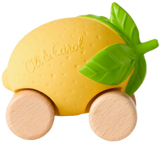Természetes kaucsuk és fa kombinációja ez a szuper citrom formájú autó! Segít a zöldségekkel, gyümölcsökkel közelebbi barátságba kerülni, már a kezdetektől! Lou, a citrom baba autó x 1 Garázs x 1 Verseny rámpa x1 Rágható kaucsuk kisautó 0 éves kortól. Fejleszti a finommotorikus készségeket. Se műanyag, se szilikon. 100% természets gumi és FSC tanusított fa. Kézzel