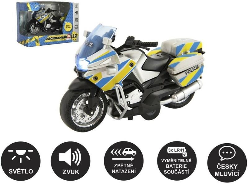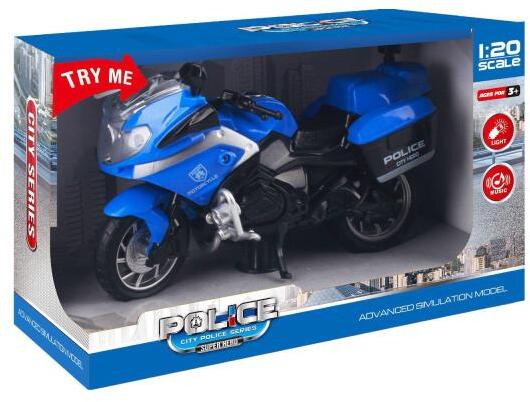Szeretnél játszani a közlekedési rendőrrel? Ez a fém alkatrészekkel ellátott motorkerékpár műanyag modellje tökéletes erre. A visszahúzás után a motorkerékpár elindul, és a hátsó kerék összenyomása után ragyogni kezd, dudál és csehül beszél. 3x LR41 elemet tartalmaz. A csomag mérete: 15 x 11 xm Motorkerékpár hossza: 12 cm Alkalmas gyermekeknek 3 éves kortól